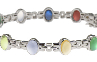 The panther links set the stage with a smooth backdrop engaging the eye towards each gorgeous genuine gemstone. Adding to its uniqueness is the way in which the stones have been purposefully positioned. They have been vertically placed to complete the idea of stones stacking on top of each other as on a wall. Any woman who has owned a bracelet with prongs knows the frustration that comes with getting her clothing caught in her jewelry. Not so with this fine piece because each gemstone is set in a smooth bezel setting.